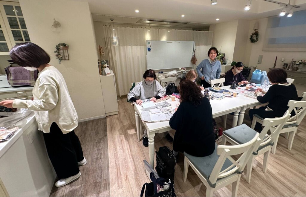 手縫いでチクチク、ゆっくり仕上がっていく心地よい時間です。
