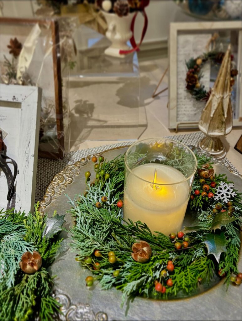 LEDキャンドルを買ったので、それに合わせてテーブルリースを作成したいという生徒さん。