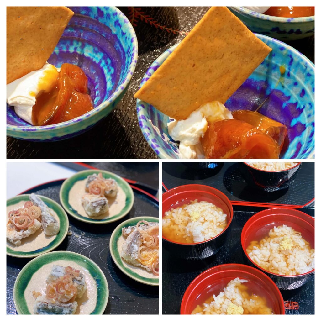 ・日本酒 古酒漬け干し柿とサワークリーム、クラッカーと