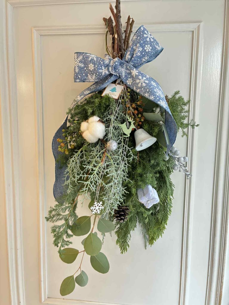 皆さんフレッシュグリーンのリースとスワッグでした。いい香りがしていました!