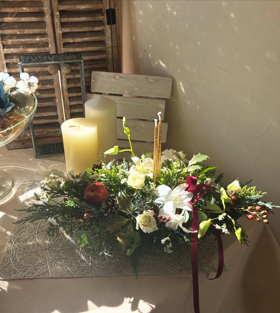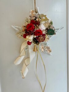 お花が終わってもグリーンだけでも様になるので、クリスマスまで飾れます。