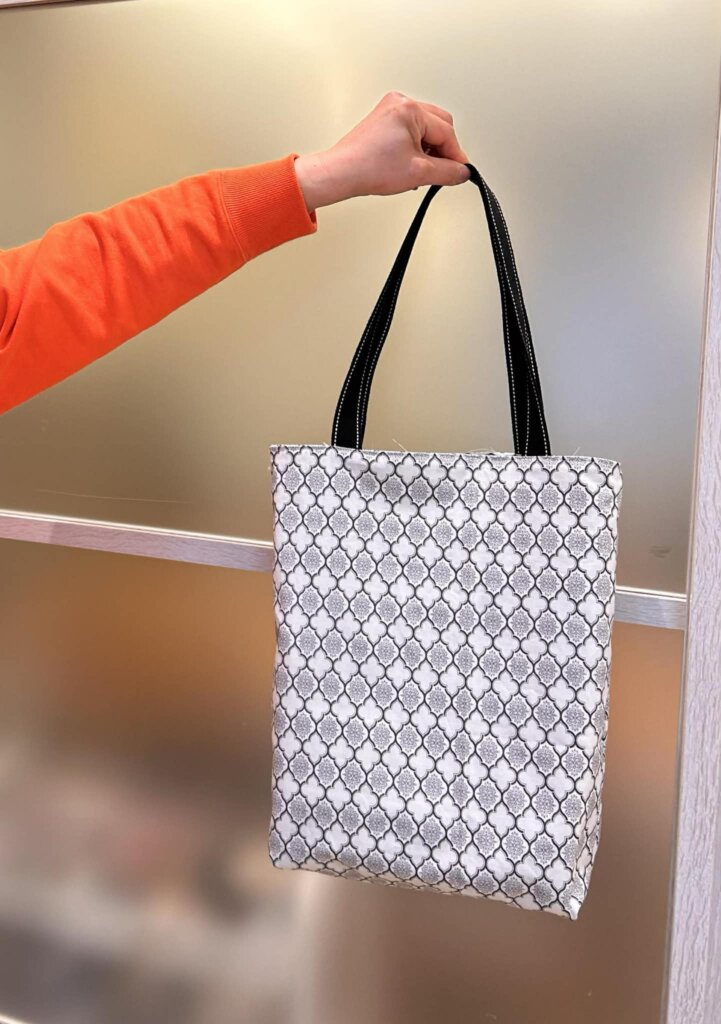 はじめましてのYさん 素敵な生地をお持ちになり、裏地付きのバッグを作りました。