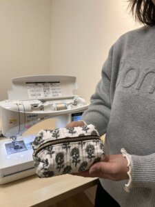 初めてのファスナーつけも上手くいって、可愛いポーチができました!