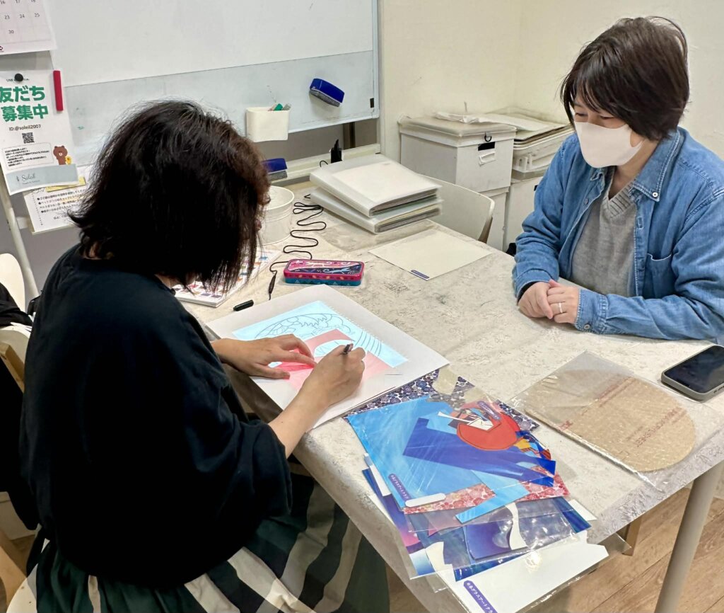 午前中フラのSさん、午後はハワイアンな模様のグラスアートを作成中です。