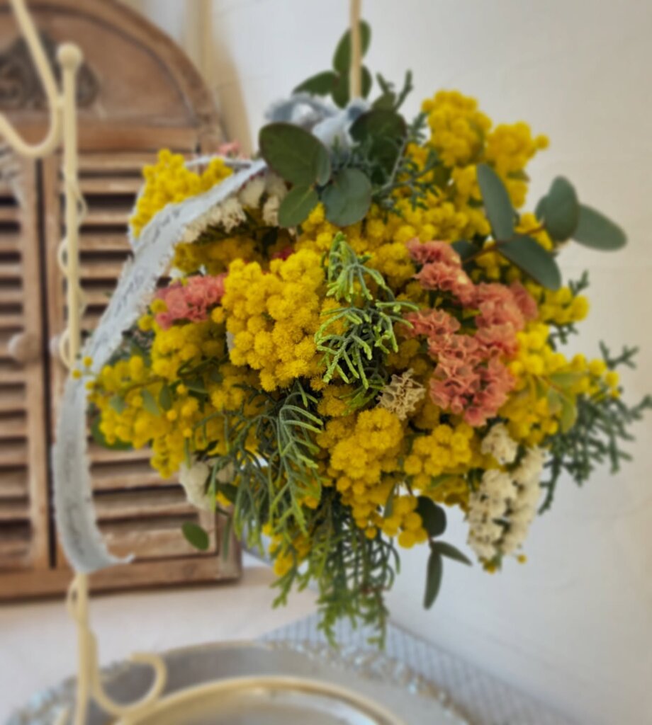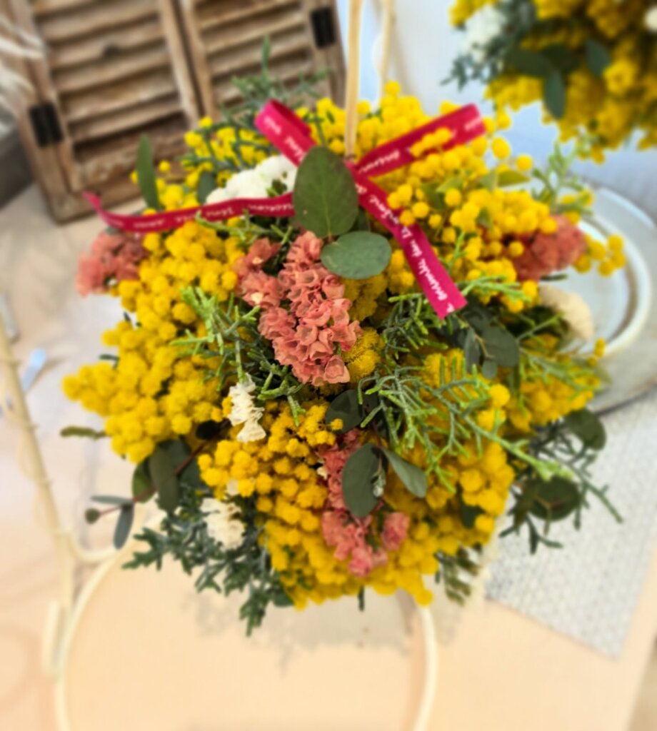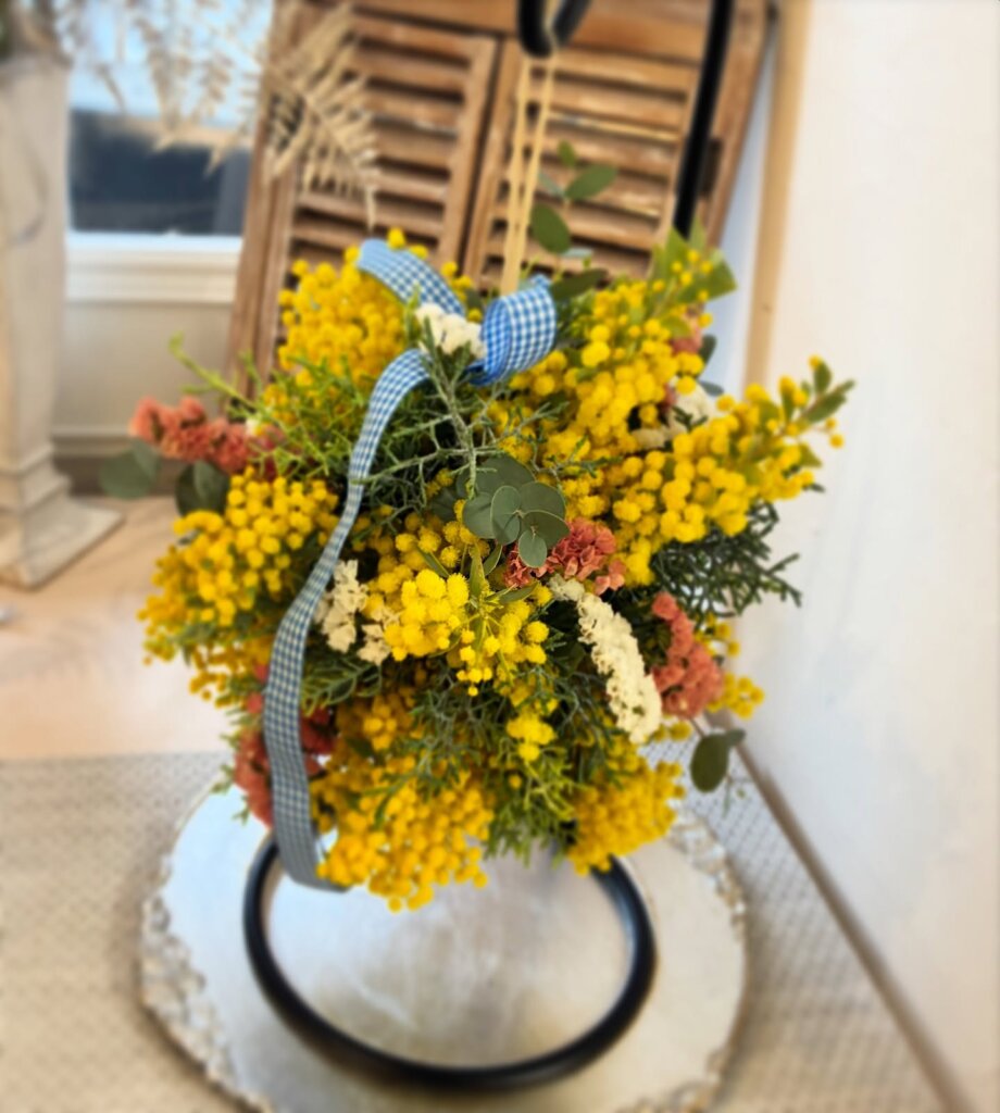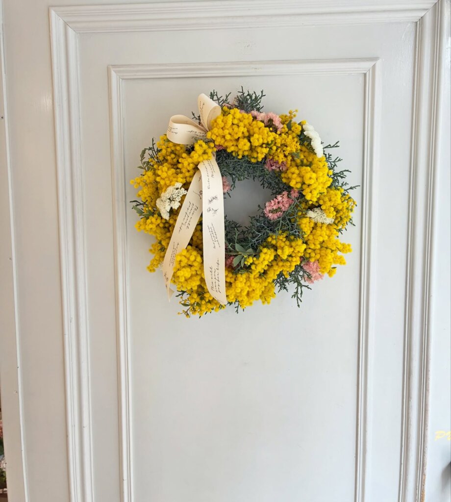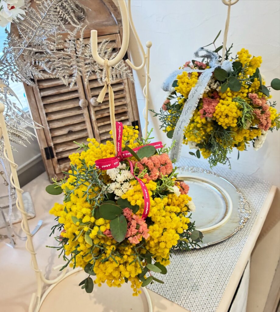 今日はミモザのリースとミモザボール