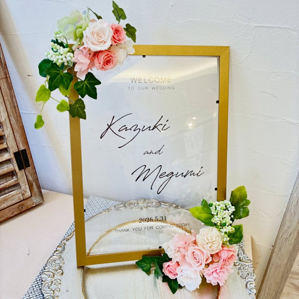 妹さんの結婚式のウェルカムコーナーに飾るお花を作成されました。