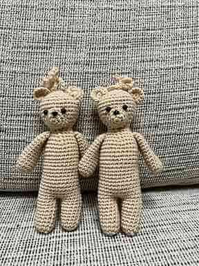 ①かぎ針編みでつくるコースター(1500円) 中細毛糸を2本合わせて6/0号のかぎ針で編みます。 中心で作り目をして増し目をしながら編み進め、最終段迄編んだら、続きで尻尾を編みます。 耳は本体から目を拾って編みます。 ② くまチャーム(3000円) 中細毛糸を3/0号のかぎ針で編みます。 足から編み始め、胴体、頭迄を続けて編みます。 手、耳、尻尾、口まわりは別に編んでとじつけます。 目と鼻は人形用の物をボンドで付けます。 ◆森(各30分 当日参加OK ご予約優先)リジョイスバルーン くるくるスティックバルーン 1000円