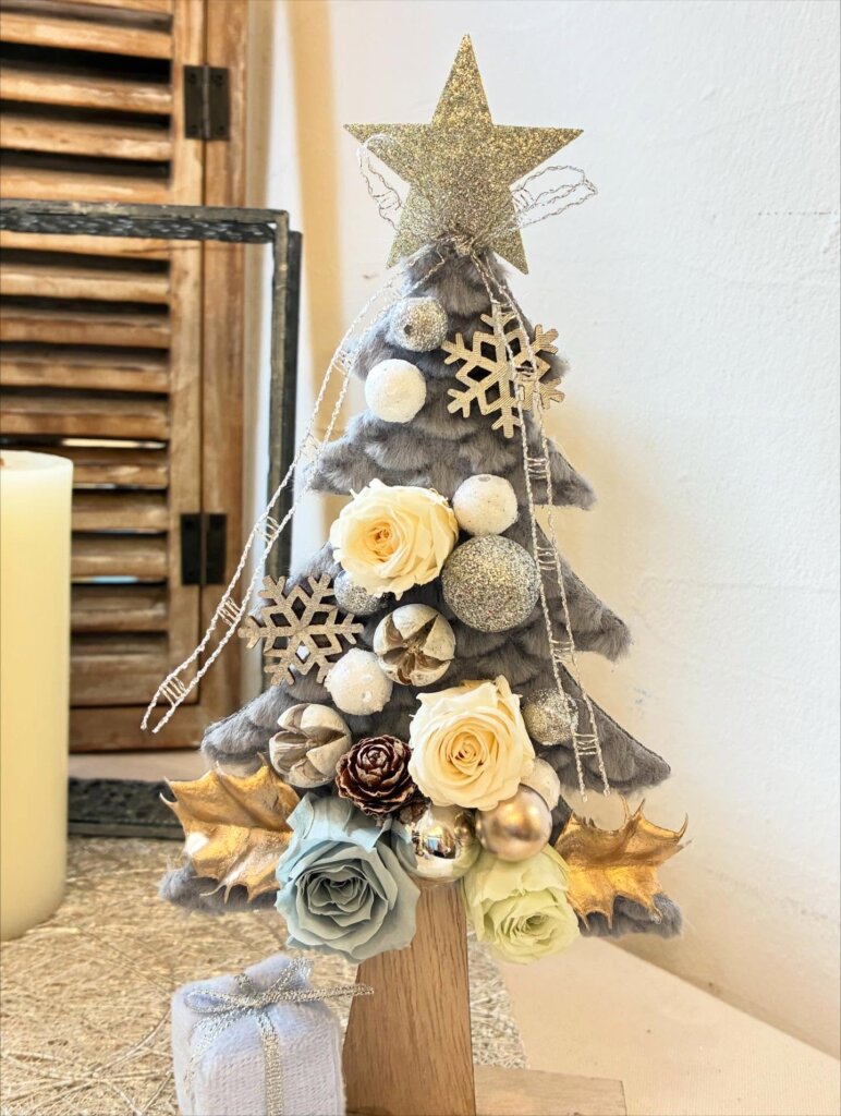 *こちらのツリーは平面アレンジになります。バラの色は選べます。